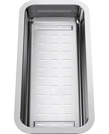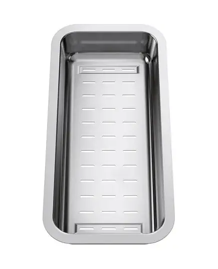 Многофункциональный коландер для моек серий Etagon. Долговечен и не подвержен коррозии благодаря высококачественной нержавеющей стали.