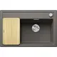• Скользящую вдоль поверхности мойки многослойную разделочную доску из пластика и древесины ясеня можно использовать на любой из рабочих зон.