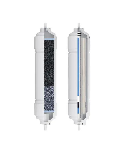Комплект финишной очистки для обратноосмотического фильтра БАРЬЕР WaterFort. Не требует специальных инструментов для замены. В комплект входит: 1. «БАРЬЕР WaterFort Осмо» - мембрана обратного осмоса. Конструкция пропускает молекулы воды. Поры мембраны в 200 раз меньше размеров вирусов и в 4000 раз – бактерий. Все вредные примеси смываются в дренаж. Производительность 100 галлонов. Ресурс до 24 месяцев. 2. «БАРЬЕР WaterFort Постфильтр» - кондиционирование воды. Дополнительная очистка после накопительной емкости. Устраняет неприятные запахи и привкусы.