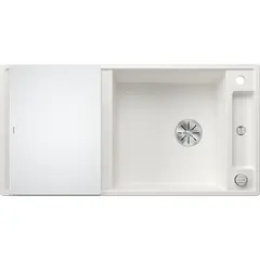 Простые линии и ультратонкий плоский кант. Малые радиусы закруглений для максимального использования поверхности и объема чаш.  Скользящая стеклянная разделочная доска или разделочный столик из ясеня позволяют сбрасывать нарезанные продукты непосредственно в посуду.  Мойки blanco искусственный камень с крылом и чашей подходят к любому дизайну кухни. Исключительно просторная основная чаша с интегрированным практичным переливом.  Высококачественный перелив C-overflow® и отводная арматура InFino® элегантно интегрированы и очень просты в уходе.  Мойка Blanco AXIA III XL 6 S 523505 оборачиваемая, возможна установка в один уровень со столешницей.