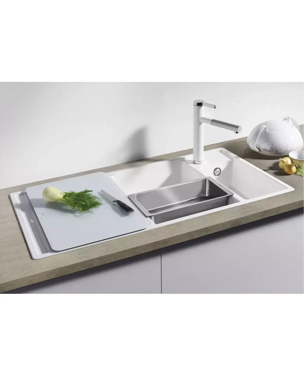Просторная двухчашевая мойка из материала Silgranit PuraDur
