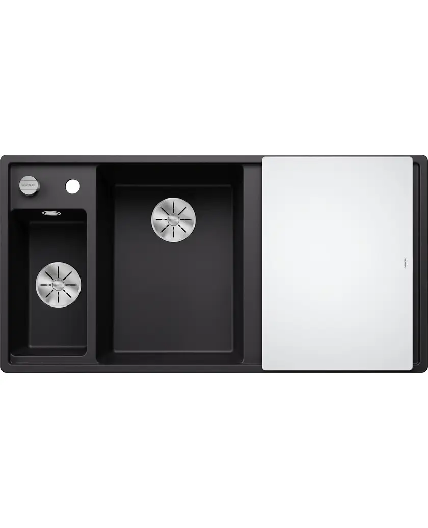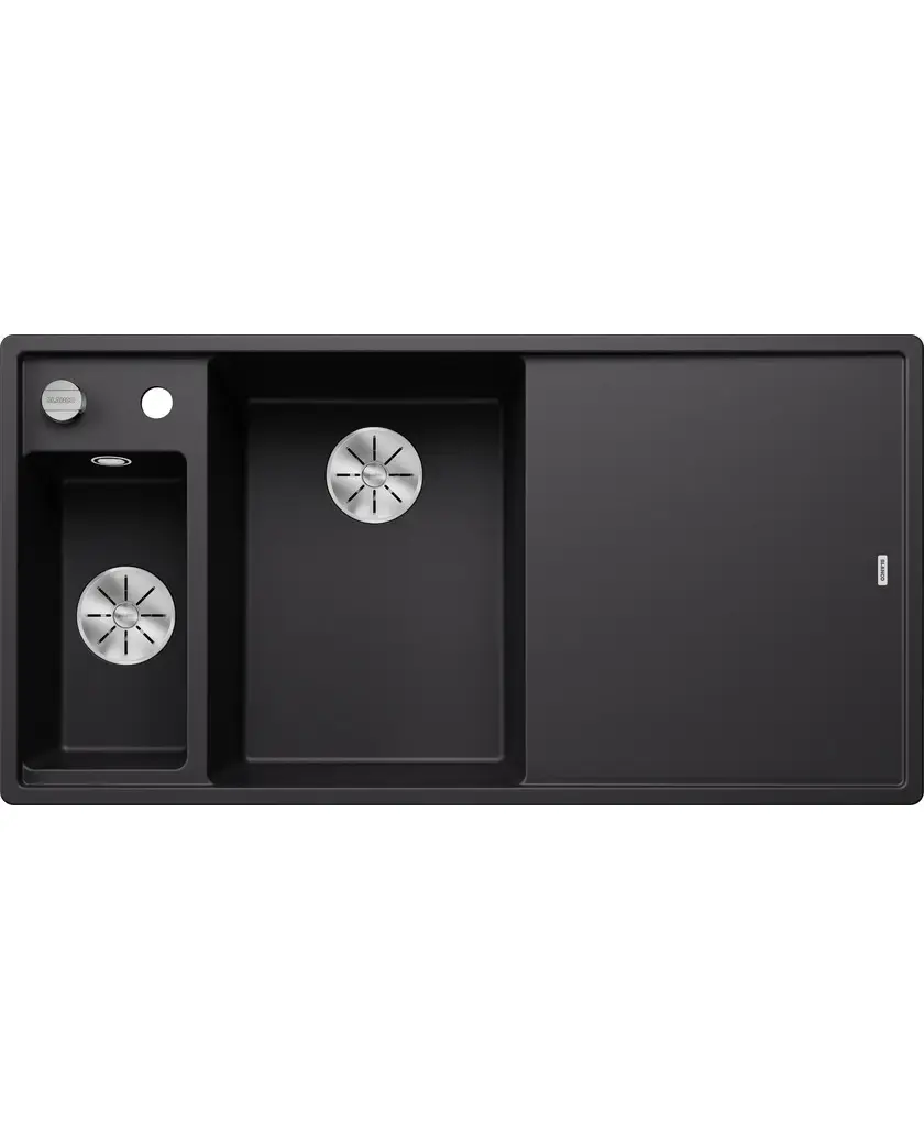 БрендBlanco МатериалSilgranit Размер мойки,мм1000х510 Размер чаши,мм345х470/180х345 Размер монтажной тумбы,см60 см Тип монтажаНакладной Расположение чашиЧаша слева ЦветЧерный