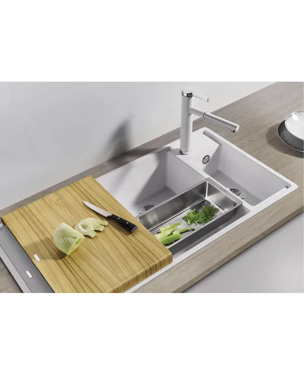 Просторная двухчашевая мойка из материала Silgranit PuraDur