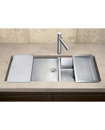 БрендBlanco МатериалНержавеющая сталь Размер мойки,мм1015х440 Размер чаши,мм400x400 Тип монтажаПодстольный ЦветНержавеющая сталь