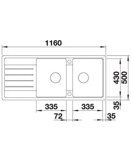 БрендBlanco МатериалSilgranit Размер мойки,мм1160х500 Размер чаши,мм335х430 Размер монтажной тумбы,см80 см Тип монтажаНакладной ЦветБелый