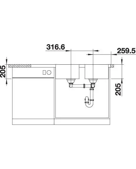 - • Широкая полка для смесителя и просторная зона сушки