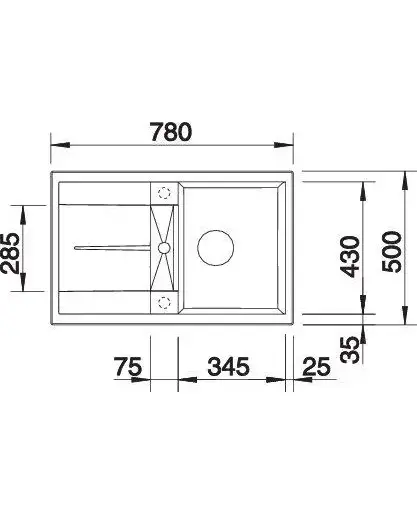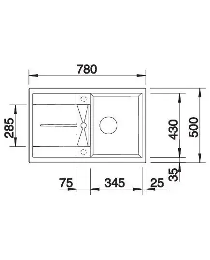 БрендBlanco МатериалSilgranit Размер мойки,мм780х500 Размер чаши,мм430х345 ЦветАнтрацит