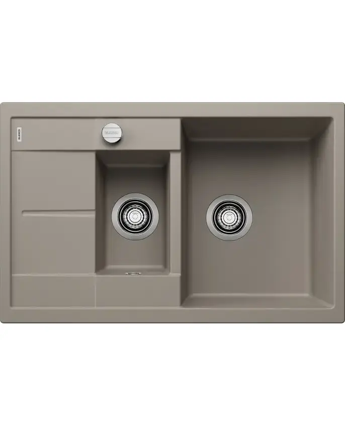 БрендBlanco МатериалSilgranit Размер мойки,мм780х500 Размер чаши,мм345х430 / 170х285 Тип монтажаНакладной Расположение чашиОборачиваемая ЦветСерый беж