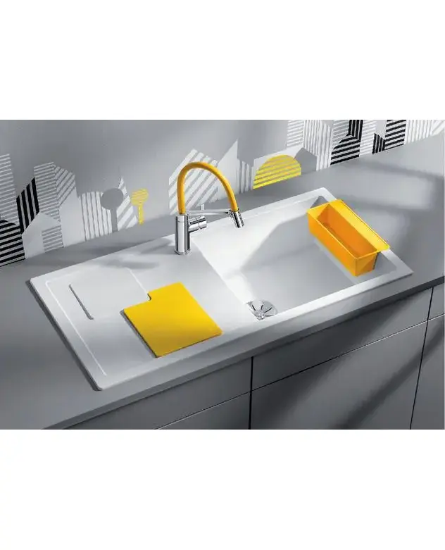 БрендBlanco МатериалSilgranit Размер мойки,мм1000х500 Размер чаши,мм470х430 Размер монтажной тумбы,см60 см Тип монтажаНакладной ЦветБелый/Лимон