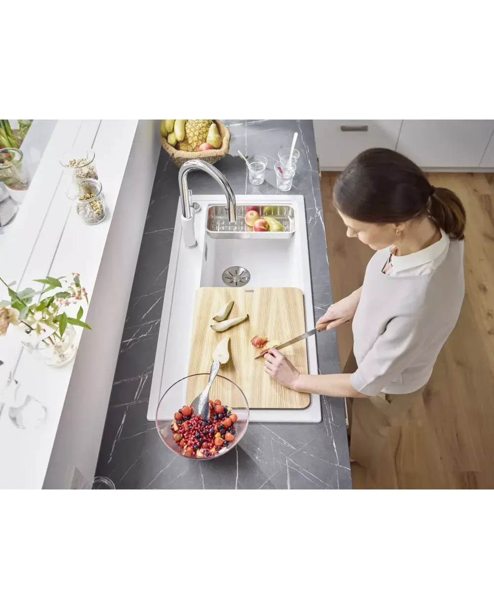 • • Мойка изящно интегрирована и проста в уходе