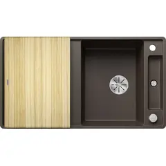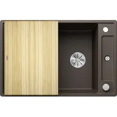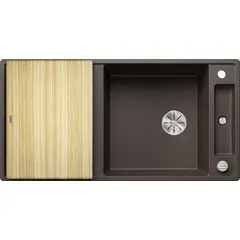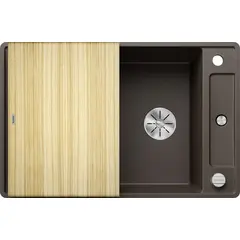 Простые линии и ультратонкий плоский кант  Скользящая деревянная разделочная доска позволяют сбрасывать нарезанные продукты непосредственно в посуду  Мойка Blanco AXIA III 6 S-R, 525851 смотрится элегантно и выглядит как единое целое и имеет первостепенное значение Раковина Blanco silgranit идеально подходят как для мытья посуды так и для приготовления пищи Коландер можно расположить в основной чаше для легкого приготовления пищи  Высококачественный перелив C-overflow® и отводная арматура InFino® элегантно интегрированы и очень просты в уходе