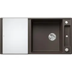 Простые линии и ультратонкий плоский кант. Малые радиусы закруглений для максимального использования поверхности и объема чаш.  Скользящая стеклянная разделочная доска или разделочный столик из ясеня позволяют сбрасывать нарезанные продукты непосредственно в посуду.  Мойки blanco искусственный камень с крылом и чашей подходят к любому дизайну кухни. Исключительно просторная основная чаша с интегрированным практичным переливом.  Высококачественный перелив C-overflow® и отводная арматура InFino® элегантно интегрированы и очень просты в уходе.  Мойка Blanco AXIA III XL 6 S 523505 оборачиваемая, возможна установка в один уровень со столешницей.
