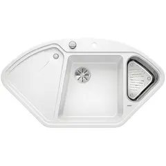 Функциональность и эстетика угловой мойки. Эргономичная мойка Blanco DELTA II-F 523673 трапециевидной формы Большая диагональ чаши облегчает мытье посуды больших размеров Мойки бланко из искусственного камня привлекают своим огромным разнообразием Перфорированный коландер из нержавеющей стали для дополнительной чаши. Отводная арматура InFino® изящно интегрирована и проста в уходе.