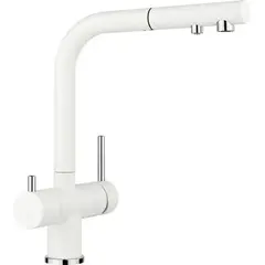 Смеситель Blanco FONTAS-S II 526672 удобен, практичен, современное решение Раздельное управление: рычаг для холодной и горячей воды справа и рычаг для фильтрованной воды слева Компактность и практичность: со смесителем нет необходимости делать дополнительное отверстие для подачи фильтрованной воды Смеситель blanco с питьевой водой, прекрасное сочетание с мойками