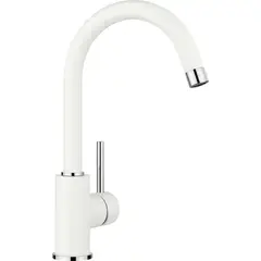 Изящный смеситель Blanco Alta compact 515317 с эстетичным дизайном Прекрасно сочетается с мойками небольших размеров Цилиндрическая форма излива Смеситель Blanco silgranit современный, удобный и практичный Носик излива поворачивается вокруг своей оси, что позволяет наполнять высокие сосуды Вращающийся на 360 градусов излив  увеличивает функциональность