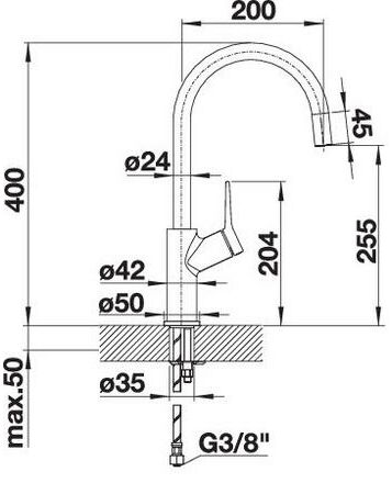 Требуется отверстие под смеситель Ø 35 мм
