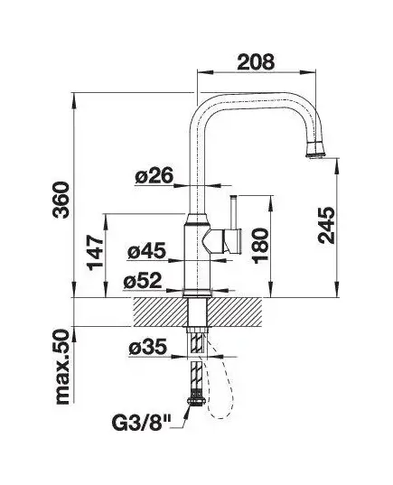 Требуется отверстие под смеситель Ø 35 мм