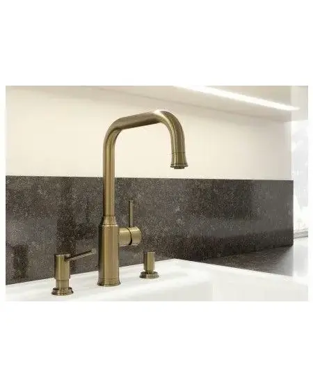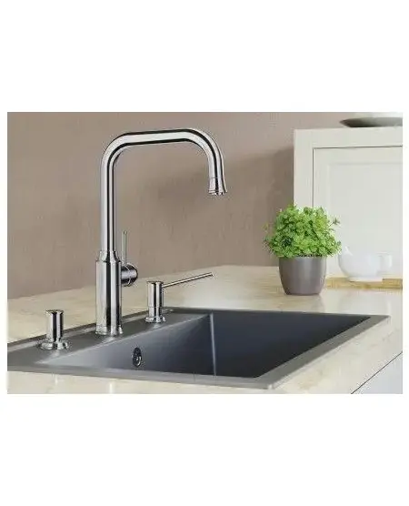 • • Высокий J-образный излив с выдвижной лейкой-душем