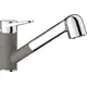 • • Выдвижная лейка с двойным режимом струи: легкое переключение между аэрированной струей и мощным спреем для ополаскивания