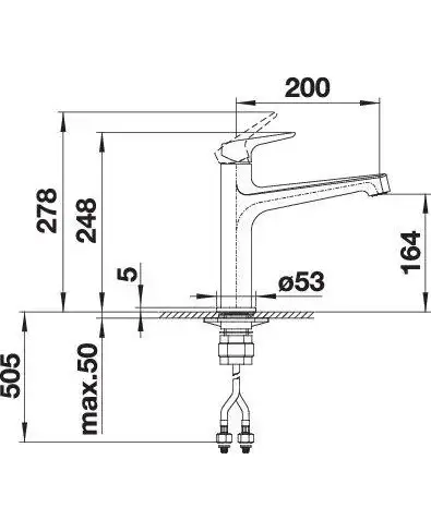 - • Легкое подключение гибкими шлангами длиной 450 мм с гайкой ⅜“